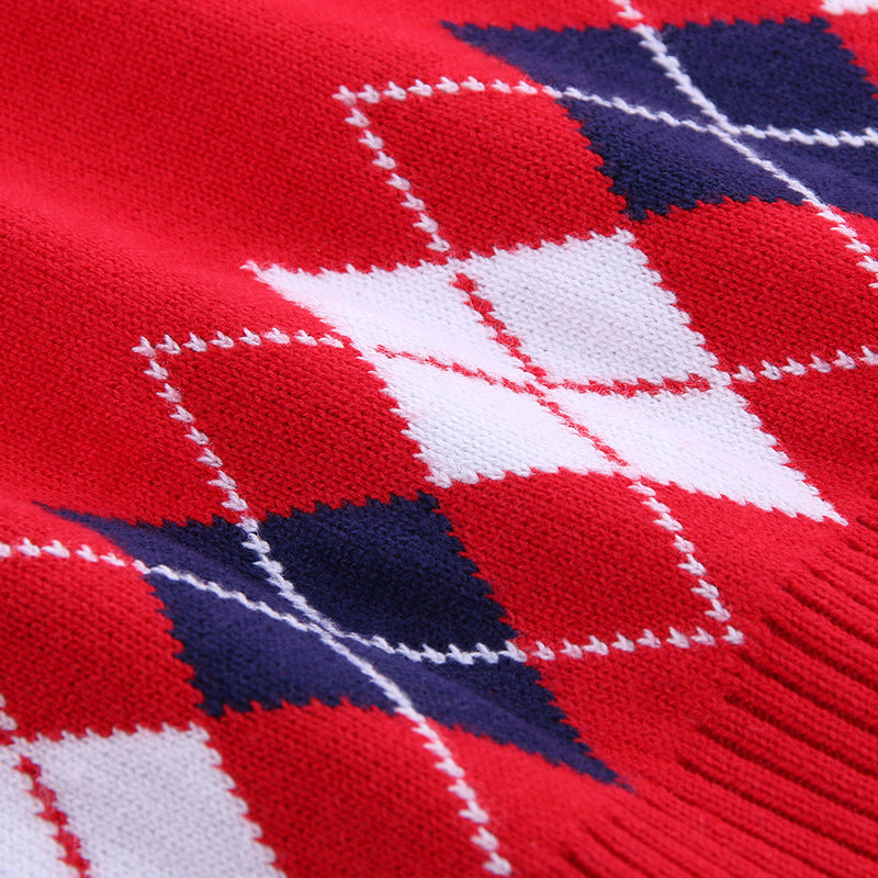 Add timeless style to your child’s wardrobe with this boys’ V-neck sweater. Designed with a smart button-down front and eye-catching red and white argyle pattern along the hem and sleeves, it combines comfort and charm. Crafted from soft, durable knit fabric, it’s perfect for layering over shirts or tees in cooler weather. Ideal for school days, special occasions, or casual outings.